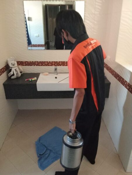 โดยใช้วิธีสเปรย์สารเคมีรอบบริเวณผนังรอบตัวอาคารท่อน้ำทิ้ง รอยแตกตามกำแพง หรือ จุดอับชื้นต่างๆ ซึ่งสารเคมีที่ใช้มีฤทธิ์ตกค้างไม่มีผลต่อผู้อยู่อาศัย หรือใช้เจลกำจัดแมลงสาบในการกำจัด ในกรณที่ไม่สามารถใช้สเปรย์บริเวณนั้นๆได้ และใช้สารเคมีในการกวาดล้างแมลงสาบในครั้งแรก ซึ่งสารเคมีปัจจุบันมีให้เลือกหลายชนิด ชนิดที่เป็นที่นิยมคือสารเคมีที่ ไม่มีฤทธิ์ตกค้าง สามารถสเปรย์บริเวณที่ต้องการความปลอดภัยสูงจากสารเคมีได้ เช่น ห้องครัว ห้องนอน ห้องเด็ก จะไม่ทิ้งสารตกค้าง แหล่งที่อยู่อาศัยของแมลงสาบมักพบภายในบ้านหรือบริเวณที่ร้อนชื้น และชอบหลบซ่อนในที่มืด ซึ่งการกำจัดแมลงสาบ ต้องใช้ความละเอียด จากผู้เชี่ยวชาญจะดีที่สุด หากทดลองกำจัดด้วยตนเองแล้วไม่หาย สามารถเรียกใช้บริการได้นะคะ