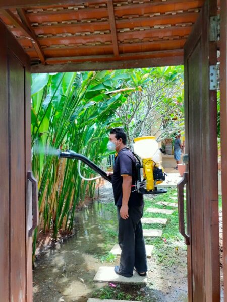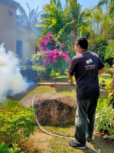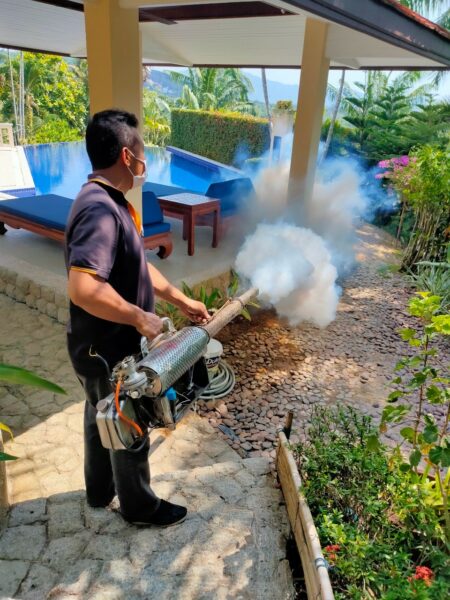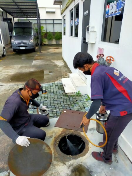 - รมควันรอบบริเวณอาคาร ท่อน้ำทิ้ง